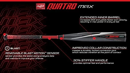 Given that no two swings are ever completely alike, Rawlings has expanded the Quatro Pro power to the newest addition to its unrivaled bat line-up: the highly anticipated Quatro Max.